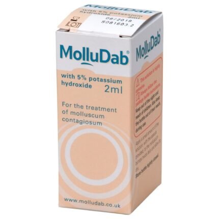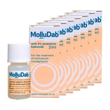 What is MolluDab Solution (5% Potassium Hydroxide)?  MolluDab is a clinically proven topical solution to effectively treat molluscum contagiosum, an